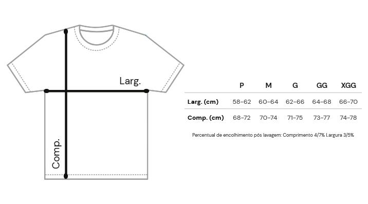 Caimento Perfeito: Modelagem unissex que veste bem sem apertar. Aquele "oversized" na medida certa se você comprar um número maior.